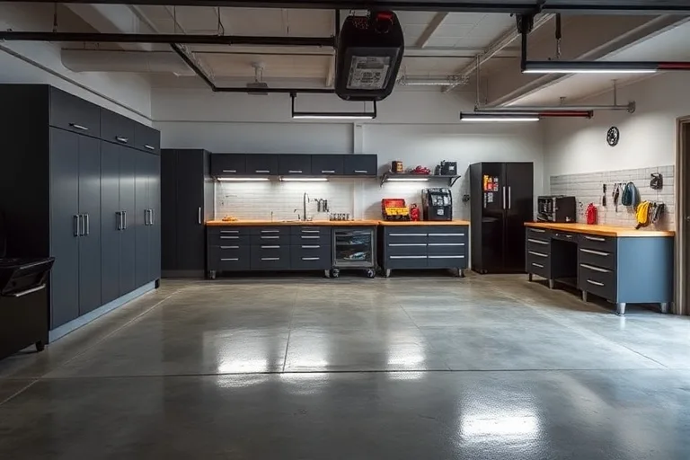 Maximize storage with custom cabinets, overhead systems, and organized storage solutions.